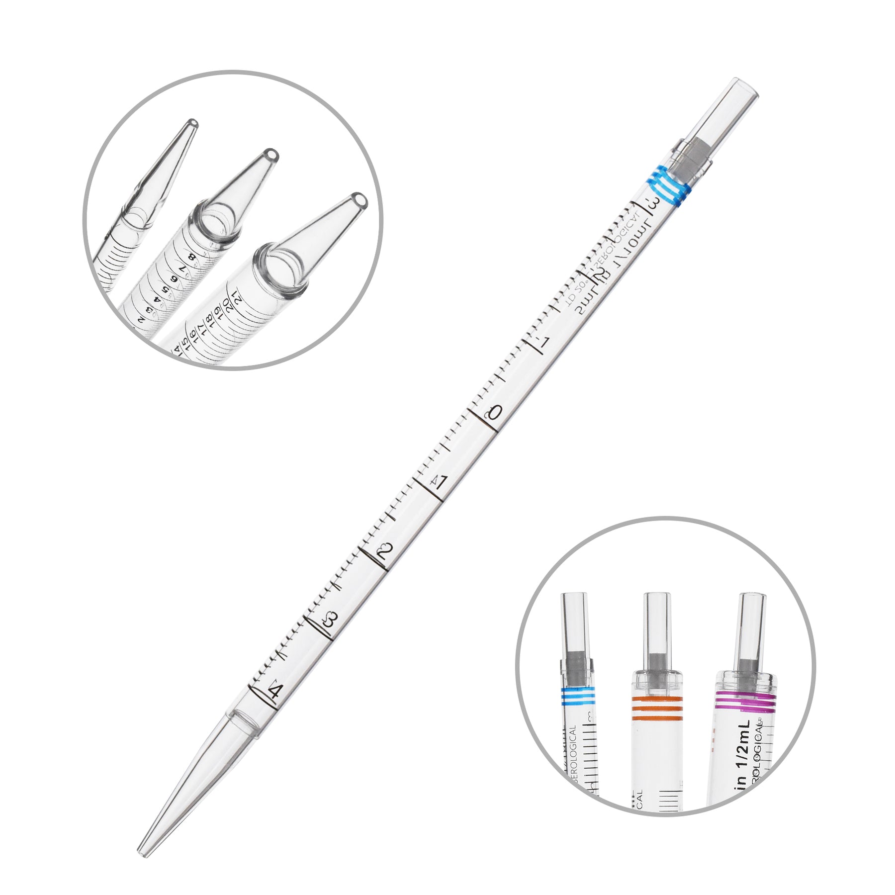 All sizes feature bold black graduations with both positive and negative volume markings for accurate measurements and easy readability. Color-coded packaging allows for quick volume identification, while an integrated barrier plug protects pipette controllers from contamination. Each pipette is gamma sterilized to a SAL of 10⁻⁶ and certified free of RNase, DNase, pyrogens, and cytotoxins.